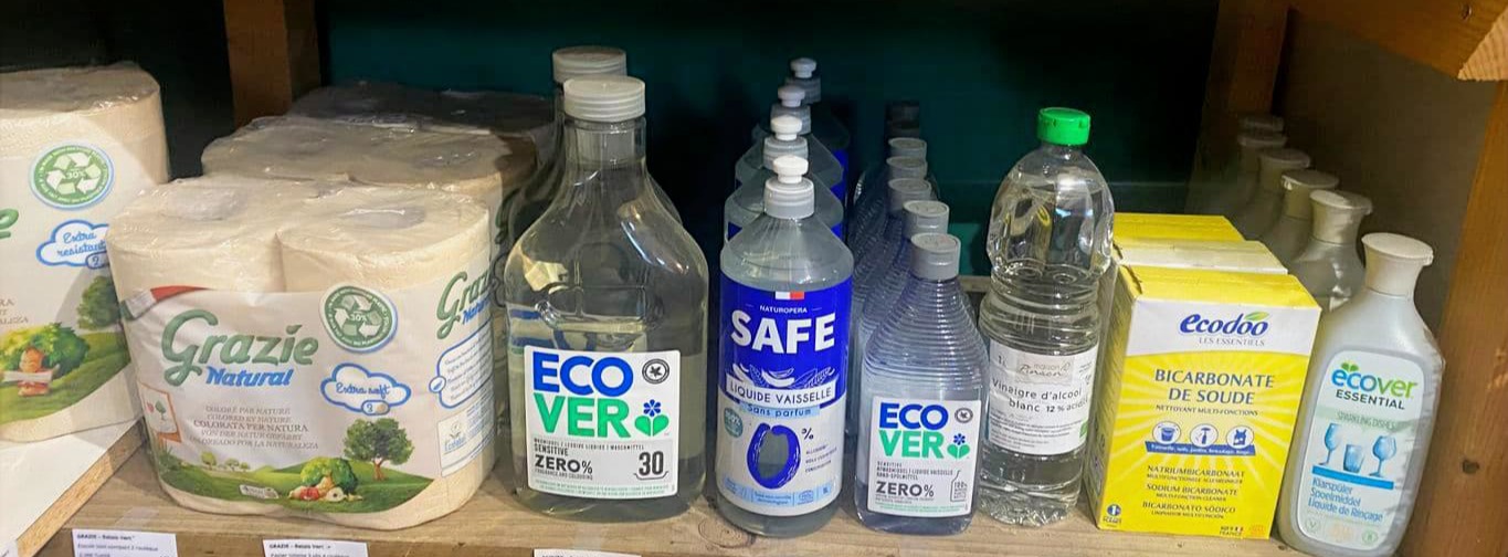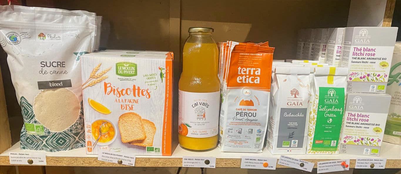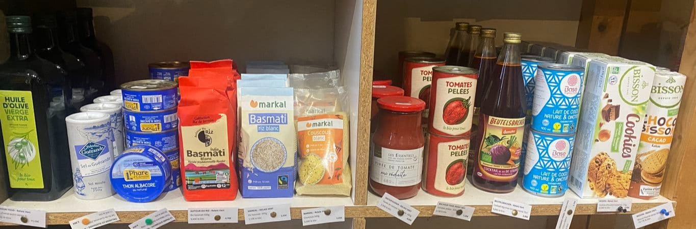Et des produits de premières nécessités : riz, café, sucre, épices, conserves, condiments… issus de l’agriculture biologique ainsi que des produits d’entretien écoresponsables.
