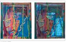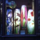 Collages de papiers de soie, kraft, texturé, tissus, fil, dentelle, crayon de couleur… sur lampe, abat-jour et tableau …