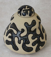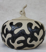 Dans un choix d’épure de la forme et de la déformation, j’émaille d’un noir qui contraste avec la couleur naturelle du grès beige.