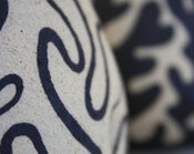 terres locales. Je décore aux engobes de porcelaines colorées. Je cuis en