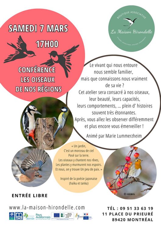 Cet atelier sera consacré à nos oiseaux, leur beauté, leurs capacités, leurs comportements…